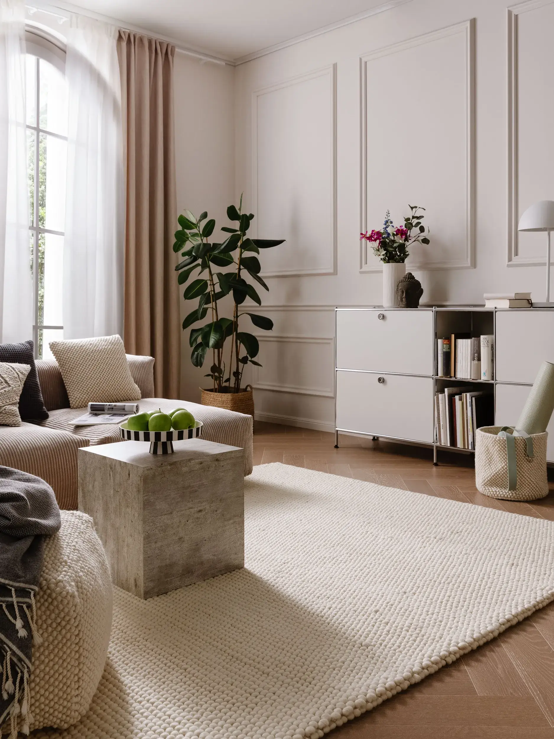 A well-chosen rug does more than cover the floor—it anchors the space, adds warmth, texture, and often acts as the visual glue between furniture, art, and lighting. Brands like NordicKnots bring timeless, Scandinavian freshness; Benuta offers incredible variety and options; Ruggable solves the practical challenges; Color Therapis creates rugs that are as much art as utility.
