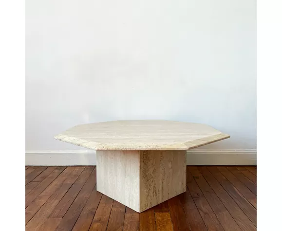 Table basse en travertin H35 x L82 x P82, proposée par un professionnel sur Selency, 460€