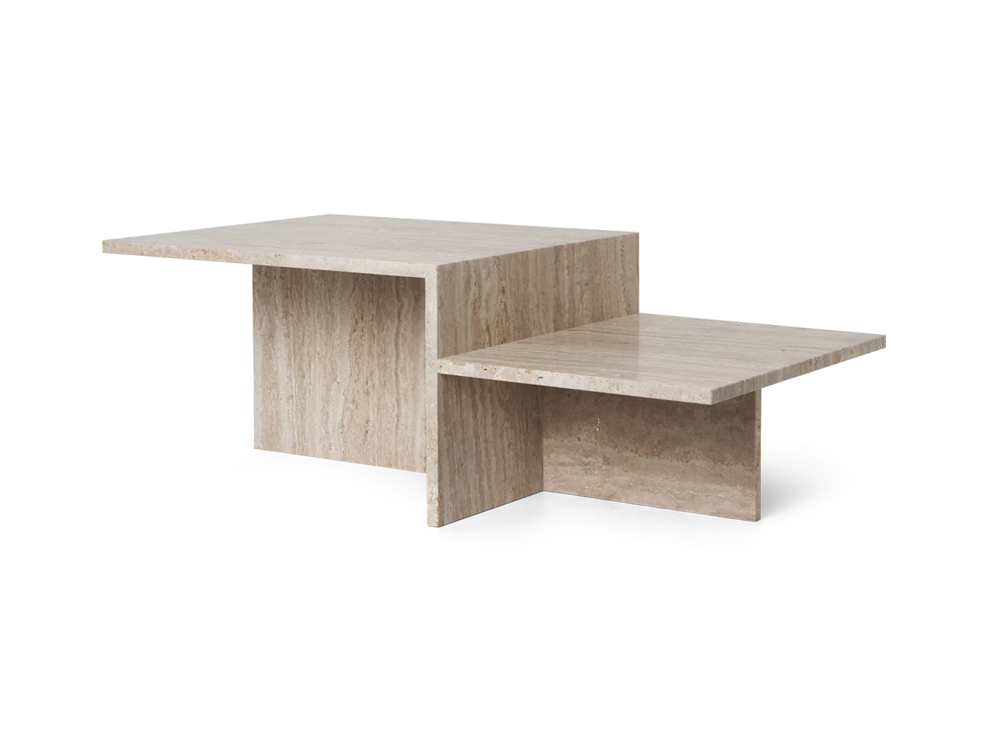 Inspirée à l'origine du minimalisme japonais, cette table basse crée un contraste avec la richesse des textures terreuses du travertin.