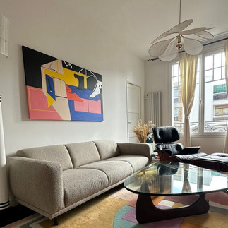 Placing a large-scale abstract canvas behind a Noguchi Table or pairing smaller paintings with a Le Corbusier LC2 armchair elevates interiors into museum-like settings. It’s less about decoration and more about curation, where every item tells a story.
